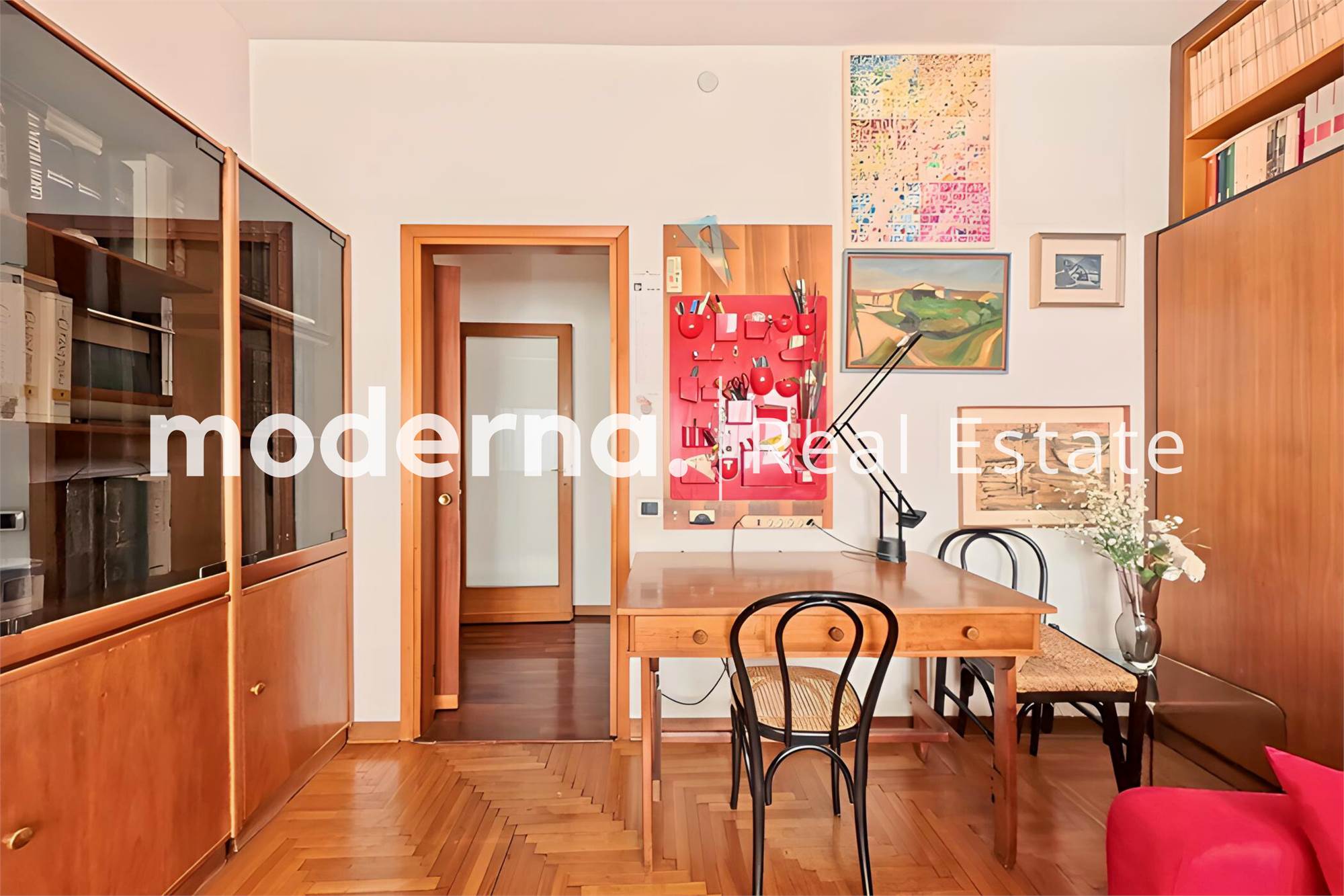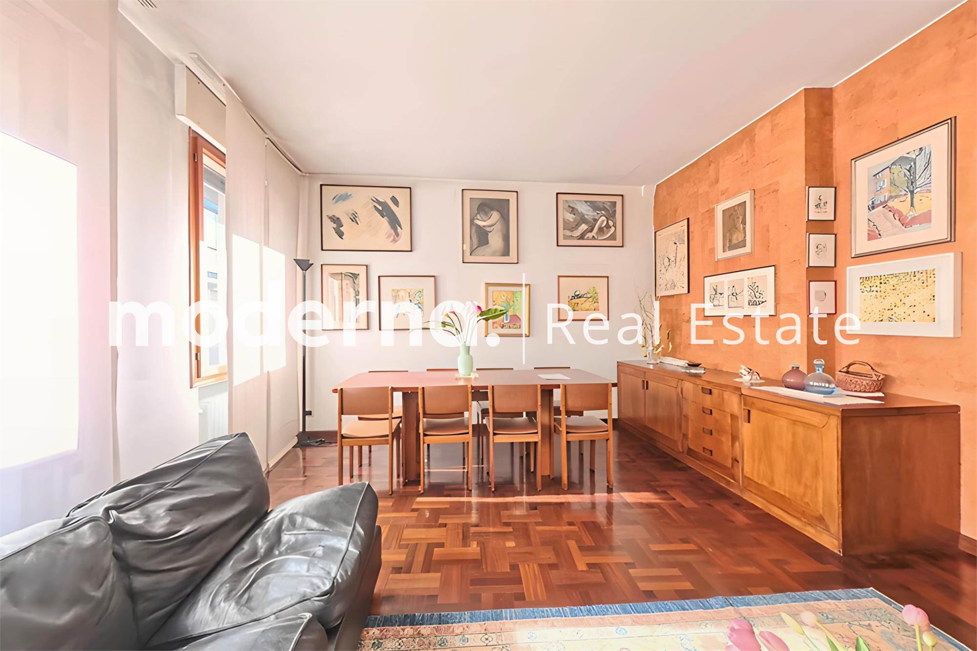 L’ingresso conduce a un ampio soggiorno, raffinato e luminoso, con esposizione favorevole e affacci silenziosi. La zona pranzo, accogliente e ben integrata, offre uno spazio ideale per momenti conviviali in un’atmosfera rilassata.