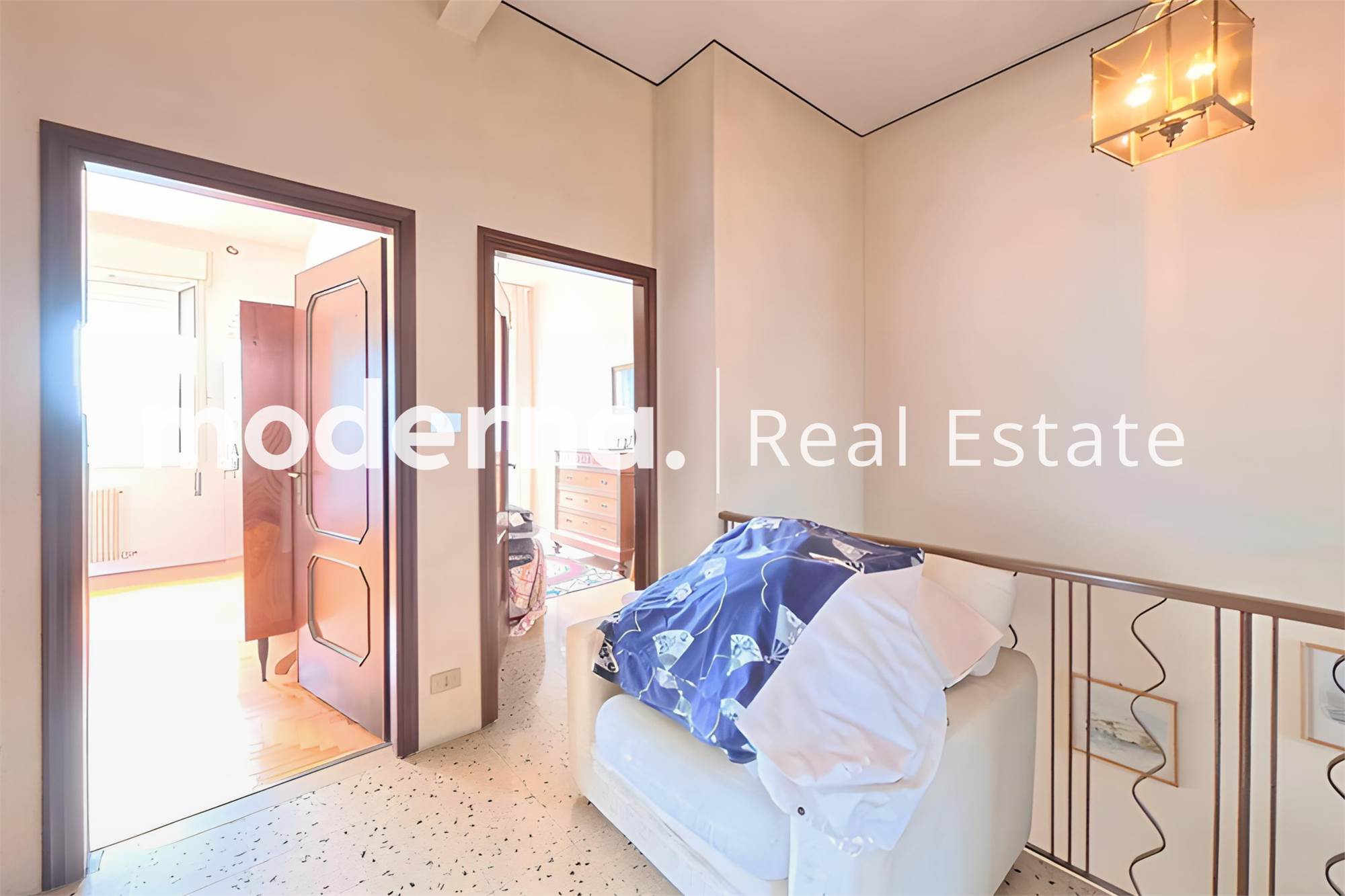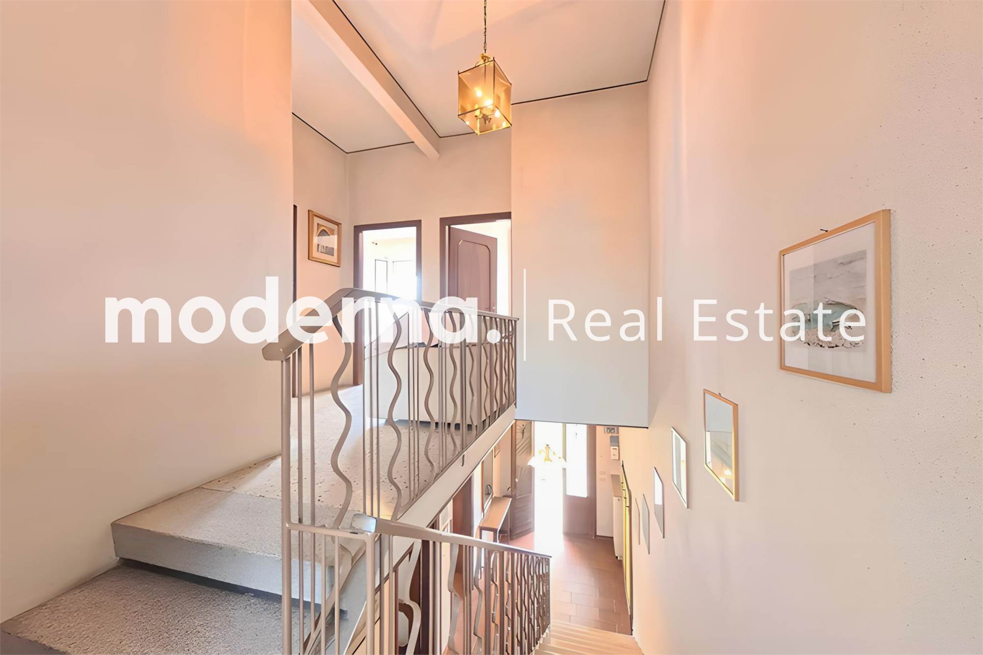 Il primo piano ospita tre camere da letto di buone dimensioni e un secondo bagno con vasca. Una camera ha un'uscita sul terrazzo che guarda il giardino e tutte le camere hanno begli affacci sul verde e ottima esposizione.