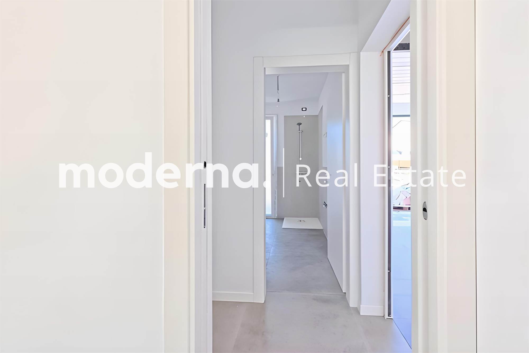Al primo piano, la villa ospita tre camere da letto, tutte dotate di terrazzo privato, uno stanza multiuso (da adibire a cabina armadio, studio o stanza hobby) oltre ai doppi servizi, ottimizzando così gli spazi e garantendo la massima privacy.
